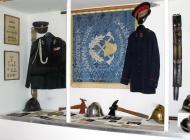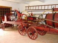 Ekspozycja zbiorów pożarniczych mieści się w remizie ze Słociny. W dawnym garażu zostało zaaranżowane wnętrze wiejskiej remizy strażackiej wyposażone w sprzęt, jaki mógł znaleźć się w takim miejscu jeszcze w latach 30. i 40. XX wieku. Jest tutaj beczkowóz, dwie sikawki konne (z górną i dolną skrzynią wodną), dwie sikawki przenośne, w tym jedna na podwoziu czterokołowym. Urządzenie remizy uzupełniają liczne "akcesoria" pożarnicze typowe w wyposażeniu wiejskich jednostek OSP jeszcze do połowy XX wieku: bosaki (w tym sufitowy i strzechowy), tłumnice, drabiny dachowe (tzw. gontowe), mosiężne kaski itp.